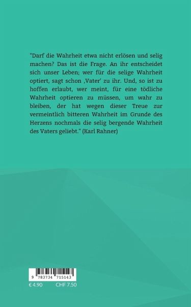 Darf die Wahrheit etwa nicht erlösen und selig machen? Das ist die Frage. An ihr entscheidet sich unser Leben; wer für die selige Wahrheit optiert, sagt schon Vater zu ihr. Und, so ist zu hoffen erlaubt, wer meint, für eine tödliche Wahrheit optieren zu müssen, um wahr zu bleiben, der hat wegen dieser Treue zur vermeintlich bitteren Wahrheit im Grunde des Herzens nochmals die selig bergende Wahrheit des Vaters geliebt. Karl RahnerHerausgeber: Hans-Jürgen Sträter, Adlerstein Verlag