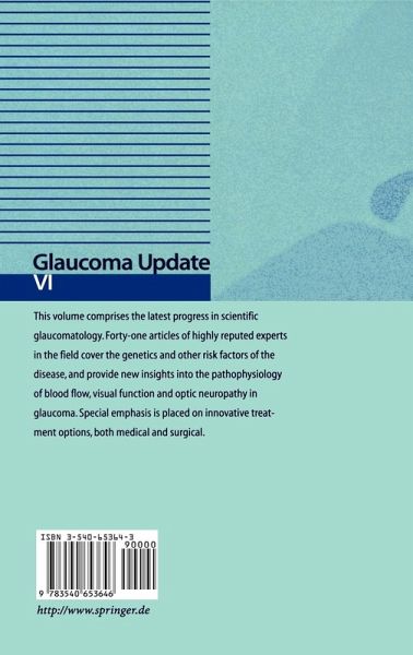 Glaucoma Update VI comprises the latest progress in scientific glaucomatology. Forty-one articles of highly reputed experts in the field cover the genetics and other risk factors of the disease and provide new insights into the pathophysiology of blood flow, visual function and optic neuropathy in glaucoma. Special emphasis is placed on innovative treatment options, both medical and surgical.