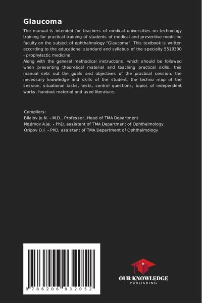 The manual is intended for teachers of medical universities on technology training for practical training of students of medical and preventive medicine faculty on the subject of ophthalmology "Glaucoma". This textbook is written according to the educational standard and syllabus of the specialty 5510300 - prophylactic medicine.Along with the general methodical instructions, which should be followed when presenting theoretical material and teaching practical skills, this manual sets out the goals and objectives of the practical session, the necessary knowledge and skills of the student, the techno map of the session, situational tasks, tests, control questions, topics of independent works, handout material and used literature.