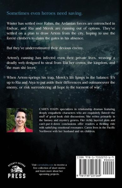 Sometimes even heroes need saving. Winter has settled over Rahm, the Ardanian forces are entrenched in Endvar, and Ria and Merek are running out of options. They've settled on a plan to draw Artem from the city, hoping to use the forest climbers to claim the gates in his absence. But they've underestimated their devious enemy. Artem's cunning has infected even their private lives, weaving a deadly web designed to steal from Ria her crown, the kingdom, and the man she loves. When Artem springs his trap, Merek's life hangs in the balance. It's up to Ria and Aiya to put aside their differences and outmaneuver the enemy, or risk surrendering all hope to the torment of war.