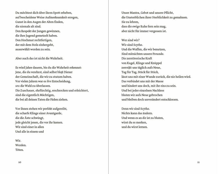 Stell dir eine Welt vor, in der Armut, Krankheit und Tod besiegt sind. Aber auch in dieser perfekten Welt müssen Menschen sterben. Und die Entscheidung über Leben und Tod treffen die Scythe: Sie allein entscheiden, wer sterben muss. Doch nicht alle Scythe halten sich an die Regeln ...