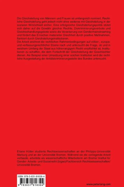 Gleichstellungspolitische Handlungsanforderungen finden sich auf allen Ebenen des Rechts. Rechtliche Gleichstellung geht jedoch nicht ohne weiteres mit Gleichstellung in der sozialen Wirklichkeit einher. Gegenstand der Untersuchung ist die Frage, ob und in welchem Umfang der Staat aus höherrangigem Recht verpflichtet ist, Institutionen zu schaffen, die dem Fortschritt der Gleichstellung der Geschlechter dienen.