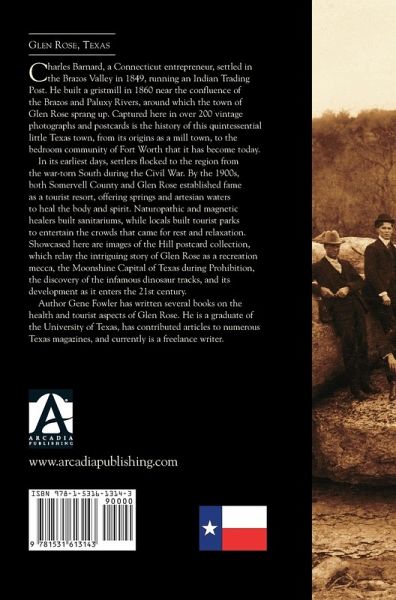 Charles Barnard, a Connecticut entrepreneur, settled in the Brazos Valley in 1849, running an Indian Trading Post. He built a gristmill in 1860 near the confluence of the Brazos and Paluxy Rivers, around which the town of Glen Rose sprang up. Captured here in over 200 vintage photographs and postcards is the history of this quintessential little Texas town, from its origins as a mill town, to the bedroom community of Fort Worth that it has become today. In its earliest days, settlers flocked to the region from the war-torn South during the Civil War. By the 1900s, both Somervell County and Glen Rose established fame as a tourist resort, offering springs and artesian waters to heal the body and spirit. Naturopathic and magnetic healers built sanitariums, while locals built tourist parks to entertain the crowds that came for rest and relaxation. Showcased here are images of the Hill postcard collection, which relay the intriguing story of Glen Rose as a recreation mecca, the Moonshine Capital of Texas during Prohibition, the discovery of the infamous dinosaur tracks, and its development as it enters the 21st century.