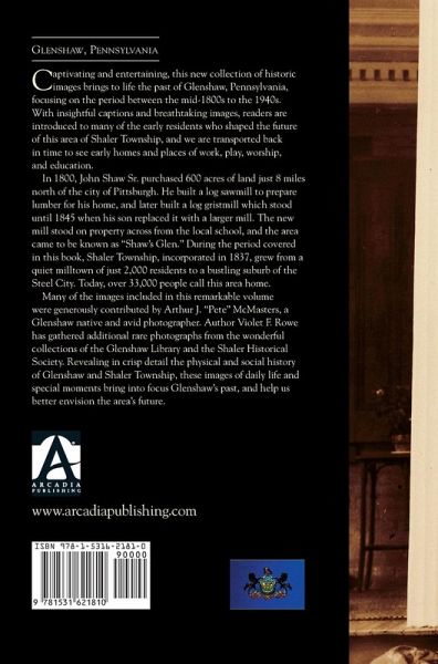 Captivating and entertaining, this new collection of historic images brings to life the past of Glenshaw, Pennsylvania, focusing on the period between the mid-1800s to the 1940s. With insightful captions and breathtaking images, readers are introduced to many of the early residents who shaped the future of this area of Shaler Township, and we are transported back in time to see early homes and places of work, play, worship, and education. In 1800, John Shaw Sr. purchased 600 acres of land just 8 miles north of the city of Pittsburgh. He built a log sawmill to prepare lumber for his home, and later built a log gristmill which stood until 1845 when his son replacedit with a larger mill. The new mill stood on property across from the local school, and the area became known as "Shaw's Glen. During the period covered in this book, Shaler Township, incorporated in 1837, grew from a quiet milltown of just 2,000 residents to a bustling suburb of the Steel City. Today, over 33,000 people call this area home.