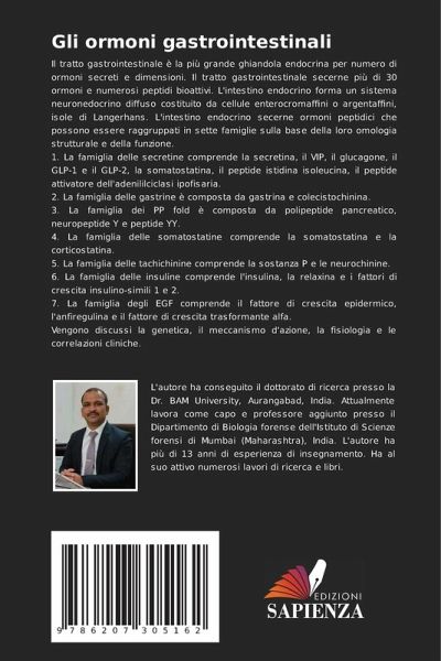 Il tratto gastrointestinale è la più grande ghiandola endocrina per numero di ormoni secreti e dimensioni. Il tratto gastrointestinale secerne più di 30 ormoni e numerosi peptidi bioattivi. L'intestino endocrino forma un sistema neuronedocrino diffuso costituito da cellule enterocromaffini o argentaffini, isole di Langerhans. L'intestino endocrino secerne ormoni peptidici che possono essere raggruppati in sette famiglie sulla base della loro omologia strutturale e della funzione.1. La famiglia delle secretine comprende la secretina, il VIP, il glucagone, il GLP-1 e il GLP-2, la somatostatina, il peptide istidina isoleucina, il peptide attivatore dell'adenililciclasi ipofisaria.2. La famiglia delle gastrine è composta da gastrina e colecistochinina. 3. La famiglia dei PP fold è composta da polipeptide pancreatico, neuropeptide Y e peptide YY. 4. La famiglia delle somatostatine comprende la somatostatina e la corticostatina. 5. La famiglia delle tachichinine comprende la sostanza P e le neurochinine. 6. La famiglia delle insuline comprende l'insulina, la relaxina e i fattori di crescita insulino-simili 1 e 2. 7. La famiglia degli EGF comprende il fattore di crescita epidermico, l'anfiregulina e il fattore di crescita trasformante alfa.Vengono discussi la genetica, il meccanismo d'azione, la fisiologia e le correlazioni cliniche.