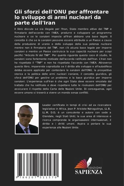 Il libro discute se sia illegale per l'Iran, Stato membro attivo del TNP e firmatario dell'accordo con l'AIEA, produrre e sviluppare un programma nucleare e se le sanzioni imposte all'Iran abbiano una base legale. Il concetto è che se le sanzioni possono essere attribuite a un Paese a causa della produzione di uranio o dello sviluppo della sua potenza nucleare mentre non è firmatario del TNP, non c'è alcuna base legale per imporre sanzioni o mentre un Paese costruisce la sua capacità nucleare per scopi pacifici ¿Articolo IV del TNP¿. Per quanto riguarda questo caso di studio, le sanzioni sono fortemente motivate dall'accordo ratificato dall'Iran. L'Iran non ha rispettato il ¿TNP¿ e non ha rispettato l'accordo con l'AIEA. Attraverso questo libro, imparerete soprattutto se il diritto allo sviluppo e all'autodifesa debba essere applicato per contestare le sanzioni dell'ONU, la prospettiva storica e la politica delle armi nucleari iraniane, il concetto giuridico, gli sforzi dell'ONU per gestire un problema e la base giuridica per imporre sanzioni. L'esperienza sull'Iran è che ogni Stato deve essere vincolato dal trattato che ha ratificato e deve rispettare tutte le risoluzioni dell'ONU per assicurare il rispetto della Carta delle Nazioni Unite. Di conseguenza, ogni essere umano si troverà a vivere un mondo senza conflitti.