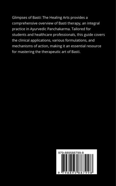"Glimpses of Basti: Healing Art" is a comprehensive exploration of the ancient Ayurvedic treatment known as Basti, a therapeutic enema designed to detoxify and rejuvenate the body. The book details the procedure, clinical applications, and mechanisms of action, providing insights into its benefits for various health conditions. It combines traditional wisdom with modern understanding, making it a valuable resource for practitioners and anyone interested in holistic healing approaches. Through detailed descriptions and practical guidance, readers can gain a deeper appreciation for this vital aspect of Ayurvedic medicine.