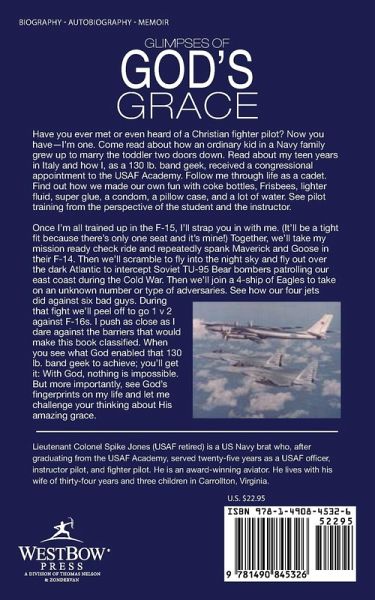Have you ever met or even heard of a Christian fighter pilot? Now you have—I’m one. Come read about how an ordinary kid in a Navy family grew up to marry the toddler two doors down. Read about my teen years in Italy and how I, as a 130 lb. band geek, received a congressional appointment to the USAF Academy. Follow me through life as a cadet. Find out how we made our own fun with coke bottles, Frisbees, lighter fluid, super glue, a condom, a pillow case, and a lot of water. See pilot training from the perspective of the student and the instructor. Once I’m all trained up in the F-15, I’ll strap you in with me. (It’ll be a tight fit because there’s only one seat and it’s mine!) Together, we’ll take my mission ready check ride and repeatedly spank Maverick and Goose in their F-14. Then we’ll scramble to fly into the night sky and fly out over the dark Atlantic to intercept Soviet TU-95 Bear bombers patrolling our east coast during the Cold War. Then we’ll join a 4-ship of Eagles to take on an unknown number or type of adversaries. See how our four jets did against six bad guys. During that fight we’ll peel off to go 1 v 2 against F-16s. I push as close as I dare against the barriers that would make this book classified. When you see what God enabled that 130 lb. band geek to achieve; you’ll get it: With God, nothing is impossible. But more importantly, see God’s fingerprints on my life and let me challenge your thinking about His amazing grace.
