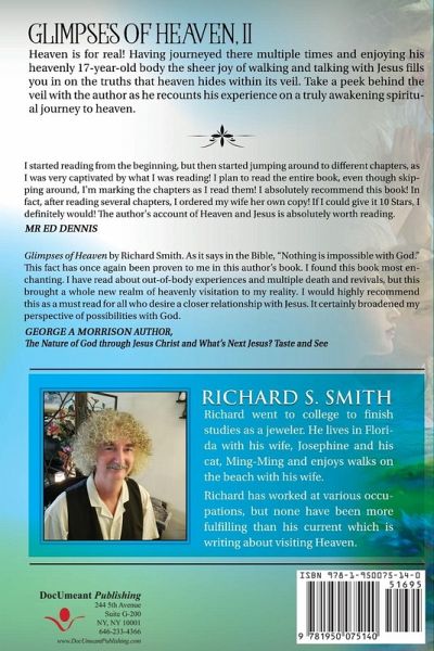 Heaven is for real! Having journeyed there multiple times and enjoying is heavenly 17-year-old body, the sheer joy of walking and talking with Jesus fills you in on the truths that heaven hides within its veil. Take a peek behind the veil with the author as he recounts his experience on a truly awakening spiritual journey to heaven. In this second book, Richard relates his experiences during his trips to heaven to meet Jesus and others from the Bible and history. You'll discover wonders beyond your wildest imagination, where Earth's physics don't apply. There is so much more to heaven than you can begin to comprehend. That's why this book and series is called Glimpses of Heaven.