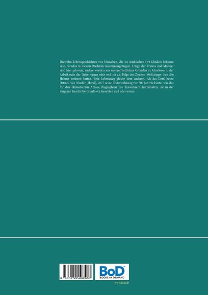Dreizehn Lebensgeschichten von Menschen, die im märkischen Ort Glindow bekannt sind, werden in diesem Büchlein zusammengetragen. Einige der Frauen und Männer sind hier geboren, andere wurden aus unterschiedlichen Gründen zu Glindowern, der Arbeit oder der Liebe wegen oder weil sie als Folge des Zweiten Weltkrieges ihre alte Heimat verloren hatten. Kein Lebensweg gleicht dem anderen. Als das Dorf, heute Ortsteil von Werder (Havel), 2017 seine Ersterwähnung vor 700 Jahren feierte, war das für den Heimatverein Anlass, Biographien von Einwohnern festzuhalten, die in der jüngeren Geschichte Glindower Gesichter sind oder waren.