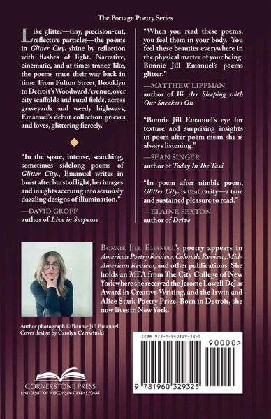 Like glitter-tiny, precision-cut, reflective particles-the poems in Glitter City shine by reflection with flashes of light. Narrative, cinematic, and at times trance-like, the poems trace their way back in time. From Fulton Street, Brooklyn to Detroit's Woodward Avenue, over city scaffolds and rural fields, across graveyards and weedy highways, Emanuel's debut collection grieves and loves, glittering fiercely.