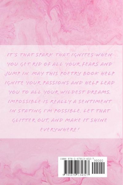 This poetry book is a splash of glitter. Let the poems provide insight into your life and help guide you in your next creative endeavor. Each poem is meant to inspire and spark your creativity. Excited to help be a catalyst to your blossoming creativity.