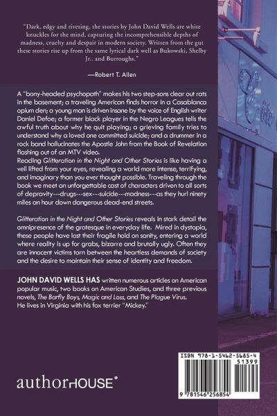 A "bony-headed psychopath" makes his two step-sons clear out rats in the basement; a traveling American finds horror in a Casablanca opium den; a young man is driven insane by the voice of English writer Daniel Defoe; a former black player in the Negro Leagues tells the awful truth about why he quit playing; a grieving family tries to understand why a loved one committed suicide; and a drummer in a rock band hallucinates the Apostle John from the Book of Revelation flashing out of an MTV video. Reading Glitteration in the Night and Other Stories is like having a veil lifted from your eyes, revealing a world more intense, terrifying, and imaginary than you ever thought possible. Traveling through the book we meet an unforgettable cast of characters driven to all sorts of depravity---drugs---sex---suicide---madness---as they hurl ninety miles an hour down dangerous dead-end streets. Glitteration in the Night and Other Stories reveals in stark detail the omnipresence of the grotesque in everyday life. Mired in dystopia, these people have lost their fragile hold on sanity, entering a world where reality is up for grabs, bizarre and brutally ugly. Often they are innocent victims torn between the heartless demands of society and the desire to maintain their sense of identity and freedom.