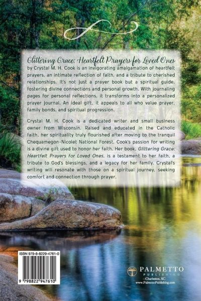 Explore and Deepen Your Faith: A Personalized Prayer Guide with Journaling Pages for Spiritual Growth, Family Connections and Inspiration. A Perfect Gift for Every Occasion. Glittering Grace: Heartfelt Prayers for Loved Ones is a thought-provoking and inspiring assembly of heartfelt prayers, penned down by Crystal M. H. Cook. The book is an intimate reflection of her Catholic faith and a tribute to her family and closest friends. Through her writings, Crystal gives us a glimpse into her spiritual journey, her rediscovery of faith, and the deep motivations that led her to craft this exceptional book. But Glittering Grace is more than a collection of prayers. It is a spiritual compass, guiding its readers on how to pray, fostering a stronger bond with God and those close to their hearts. Each prayer is a testament to Crystal's devotion and her deep-seated gratitude for life's blessings. The book extends beyond the written prayers and into the realm of personal spiritual growth. It serves as an interactive guide, providing the readers with a path to create their unique prayers. The inclusion of dedicated journaling pages sets this book apart, turning it from a simple read to a personal spiritual journey. These pages are an invitation for readers to pour in their thoughts, ideas, and prayers, making the book a cherished keepsake or a personalized prayer journal. Glittering Grace is an illuminating blend of prayers and insights that work together to deepen the readers' spiritual connections. It is an inspiration for everyone who believes in the power of prayer, cherishes family bonds, and is keen on personal spiritual growth. Perfect for any occasion, it is an ideal gift, a keepsake and guide that continues to inspire and guide over time. In Glittering Grace, Crystal M. H. Cook has created a beautiful testament to faith and prayer. It is a book to be treasured, a book to inspire, and a book to guide each of its readers on their spiritual journey.