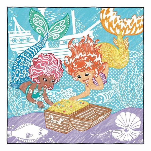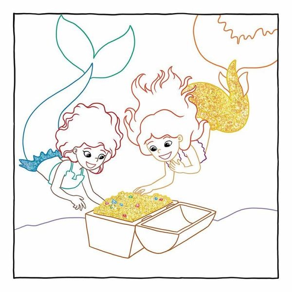 24 Motive zum Thema Meerjungfrauenmit buntem Glitzerbeim Ausmalen mit Buntstiften werden versteckte Muster und Motive sichtbarbunte Linien als OrientierungshilfeAltersempfehlung: ab 5 Jahren