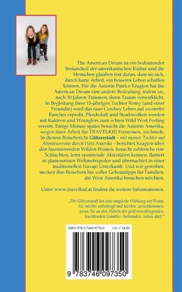 The American Dream ist ein bedeutender Bestandteil der amerikanischen Kultur und die Menschen glauben fest daran, dass sie sich, durch harte Arbeit, ein besseres Leben schaffen können. Für die Autorin Patrice Kragten hat the American Dream eine andere Bedeutung, indem sie sich, nach 30 Jahren Träumen, ihren Traum verwirklicht. In Begleitung ihrer 15-jährigen Tochter Romy (und einer Freundin) wird das raue Cowboyleben auf zweierlei Ranches erprobt. Pferdeduft und Staubwolken werden mit Kakteen und Wranglers zum echten Wild West-Feeling vereint. Einige Monate später besucht die Autorin Amerika, wegen ihrer Arbeit für TRAVELKID Fernreisen, nochmals. In diesem Reisebericht Glitzerstadt mit meiner Tochter auf Abenteuerreise durch West Amerika berichtet Kragten über den faszinierenden Wilden Westen, besucht zahlreiche rote Schluchten, lernt spannende Aktivitäten kennen, flaniert in glamourösen Weltmetropolen und übernachtet in einer traditionellen Navajo-Unterkunft. Und wie gewohnt stecken ihre Reiseberichte voller Geheimtipps für Familien, die West Amerika besuchen möchten. Unter www.travelkid.at findest du weitere Informationen. Die Glitzerstadt hat eine magische Wirkung auf Romy. Sie möchte unbedingt mal hierhin zurückkommen, wenn Sie an den Hebeln der geldverschlingenden, leuchtenden Gambler-Automaten ziehen darf.