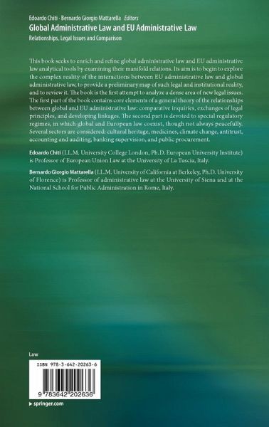 This book seeks to enrich and refine global administrative law and EU administrative law analytical tools by examining their manifold relations. Its aim is to begin to explore the complex reality of the interactions between EU administrative law and global administrative law, to provide a preliminary map of such legal and institutional realities, and to review this first attempt to analyze a dense area of new legal issues. The first part of the book contains core elements of a general theory of the relationships between global and EU administrative law: comparative inquiries, exchanges of legal principles, and developing linkages. The second part is devoted to special regulatory regimes, in which global and European law coexist, though not always peacefully. Several sectors are considered: cultural heritage, medicines, climate change, antitrust, accounting and auditing, banking supervision, and public procurement.