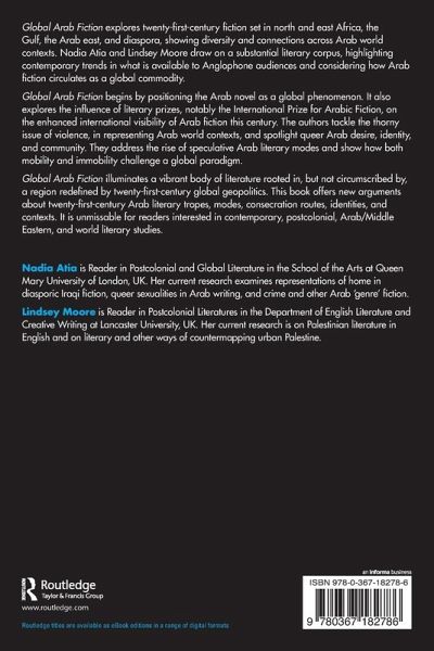 Global Arab Fiction explores twenty-first-century fiction set in north and east Africa, the Gulf, the Arab east, and diaspora, showing diversity and connections across Arab world contexts. Nadia Atia and Lindsey Moore draw on a substantial literary corpus, highlighting contemporary trends in what is available to Anglophone audiences and considering how Arab fiction circulates as a global commodity.