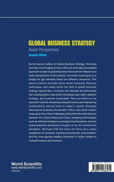 As the second edition of Global Business Strategy, this book provides novel insights on how a firm can formulate a successful approach toward its global business from both the Western and Asian perspectives. In this respect, the book's overall goal is to bridge the gap between these two different viewpoints. This second edition includes more recent business theories, techniques, and cases within the field of global business strategy. Specifically, it includes new theories and techniques like creating shared value (CSV), the global value chain, platform strategy, and business ecosystem. They are shown to be important tools for enhancing competitiveness and maintaining sustainability among firms in today's rapidly changing international business environment. This is very much evident today given the critical challenges arising from the trade tensions between the United States and China, emerging technologies such as artificial intelligence and digital transformation, and the unprecedented disruptions brought on by the coronavirus pandemic. We hope that this book will serve as a useful companion for students, business practitioners, policymakers, and the more general readers interested in issues related to competitiveness and business.