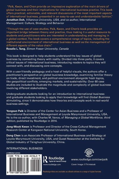 This textbook is designed to help students understand the key issues of global business by connecting theory with reality. Divided into three parts, it covers critical issues of international business, introducing readers to topics they will connect with, and discussing core concepts. With a user-friendly pedagogy and a host of helpful visuals, the authors offer a practitioner's perspective on global business knowledge, examining familiar theory on trade, direct investment, and political environment alongside fresh topics, like geopolitical conflicts, emerging markets, and sustainability. Over sixty case studies are included to illustrate the magnitude and complexity of global business involving different stakeholders. Undergraduate students looking for an introduction to international business and graduate students looking to apply their knowledge will find Global Business stimulating, since it demonstrates how theories and concepts work in real-world business settings.