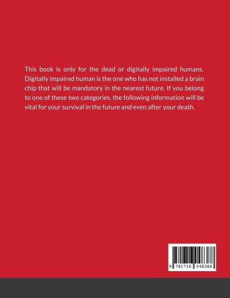 This book is only for the dead or digitally impaired humans. Digitally impaired human is the one who has not installed a brain chip that will be mandatory in the nearest future. If you belong to one of these two categories, the following information will be vital for your survival in the future and even after your death.