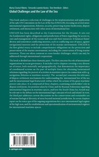 This book analyses a selection of challenges in the implementation and application of the 1982 UN Convention on the Law of the Sea (UNCLOS), focusing on several areas: international organizations, fisheries, security, preserving marine biodiversity, dispute settlement, and interaction with other areas of international law.