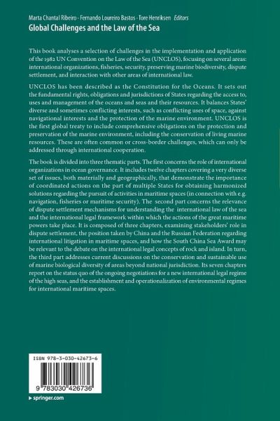 This book analyses a selection of challenges in the implementation and application of the 1982 UN Convention on the Law of the Sea (UNCLOS), focusing on several areas: international organizations, fisheries, security, preserving marine biodiversity, dispute settlement, and interaction with other areas of international law.