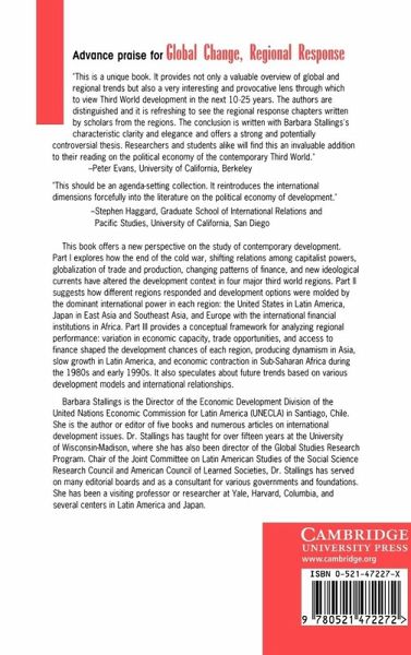 List of tables; List of figures; Acknowledgements; 1. Introduction: global change, regional response Barbara Stallings; Part I. Global Changes: 2. The Third World and the end of the Cold War Fred Halliday; 3. Capitalisms in conflict? The United States, Europe, and Japan in the post-Cold War world Barbara Stallings and Wolfgang Streeck; 4. Global production systems and Third World development Gary Gereffi; 5. New global financial trends: implications for development Stephany Griffith-Jones and Barbara Stallings; 6. The 'triumph' of liberal economic ideas in the developing world Thomas J. Biersteker; Part II. Regional Responses: 7. The East Asian NICs: a state-led path to the developed world Yun-han Chu; 8. Southeast Asia: success through international openness Linda Y. C. Lim; 9. Latin America: toward a new reliance on the market Augusto Varas; 10. Sub-Saharan Africa: underdevelopment's last stand Michael Chege; Part III. Conclusions: 11. The new international context of development Barbara Stallings.