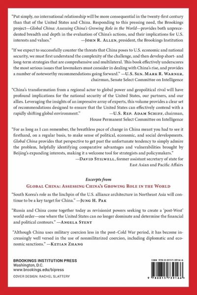 The global implications of China's rise as a global actor To better address the implications of China's new status, both for American policy and for the broader international order, Brookings scholars conducted research over the past two years, culminating in a project: Global China: Assessing China's Growing Role in the World. The project is intended to furnish policy makers and the public with hard facts and deep insights for understanding China's regional and global ambitions. Global China: Assessing China's Growing Role in the World provides the most current, broad-scope, and fact-based assessment of the implications of China's rise for the United States and the rest of the world.