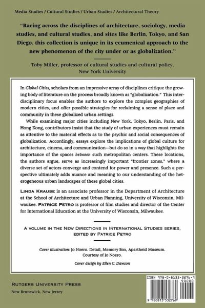 Linda Krause is an associate professor in the Department of Architecture at the School of Architecture and Urban Planning, University of Wisconsin, Milwaukee. Patrice Petro is professor of film studies and director of the Center for International Education at the University of Wisconsin, Milwaukee.