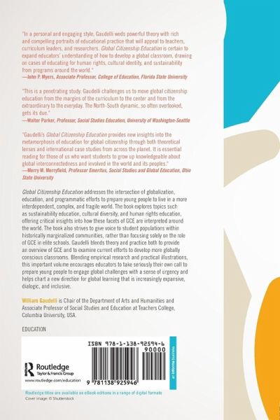 Global Citizenship Education addresses the intersection of globalization, education and programmatic efforts to prepare young people to live in a more interdependent, complex and fragile world. The book explores topics such as sustainability education, cultural diversity, and human rights education, offering critical insights into how these facets of GCE are interpreted around the world. The book also strives to give voice to student populations within historically marginalized communities, rather than focusing solely on the role of GCE in elite schools. Gaudelli blends theory and practice to provide both an overview of GCE as well as examining current efforts to develop more globally-conscious classrooms. Blending empirical research and practical illustrations, this important volume encourages educators to take seriously their own call to prepare young people to engage global challenges with a sense of urgency and helps chart a new direction for global learning thatis increasingly expansive, dialogic and inclusive.