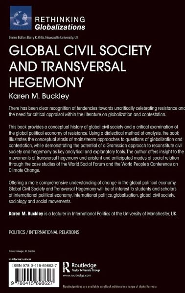 There has been clear recognition of tendencies towards uncritically celebrating resistance and the need for critical appraisal within the literature on globalization and contestation. This book provides a conceptual history of global civil society and a critical examination of the politics of resistance in the global political economy. It uses a dialectical method of analysis to illustrate the conceptual stasis of mainstream approaches to questions of globalization and contestation, while demonstrating the potential of a Gramscian approach to reconstitute hegemony as a key analytical and explanatory tool. Buckley offers insight to the movements of transversal hegemony and existent and anticipated modes of social relation through the case studies of the World Social Forum and the World People's Conference on Climate Change. Offering a more comprehensive understanding of change in the global political economy, this book will be of interest to students and scholars of international political economy, globalization, global civil society, sociology, and the politics resistance.