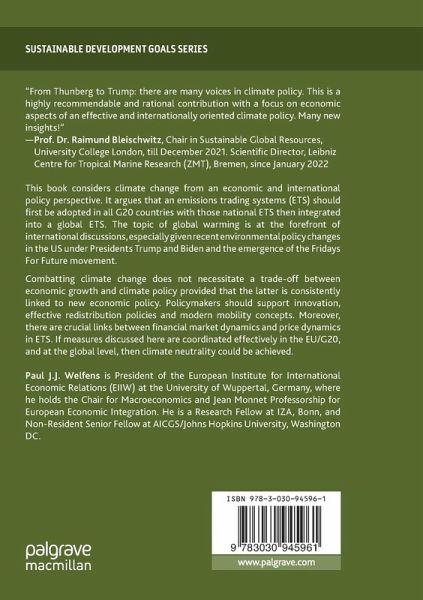 This book considers climate change from an economic and international policy perspective. It argues that an emissions trading systems (ETS) should first be adopted in all G20 countries with those national ETS then integrated into a global ETS. The topic of global warming is at the forefront of international discussions, especially given recent environmental policy changes in the US under Presidents Trump and Biden and the emergence of the Fridays For Future movement.