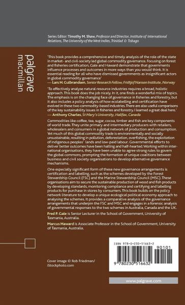 'This book provides a comprehensive and timely analysis of the role of the state in market- and civil society led global commodity governance. Focusing on forest and fisheries certification, Gale and Haward demonstrate that governments influence processes and outcomes in more ways than you would think. It is essential reading for all who have dismissed governments as insignificant actors in global commodity governance' Lars H. Gulbrandsen, Senior Research Fellow, Fridtjof Nansen Institute, Norway