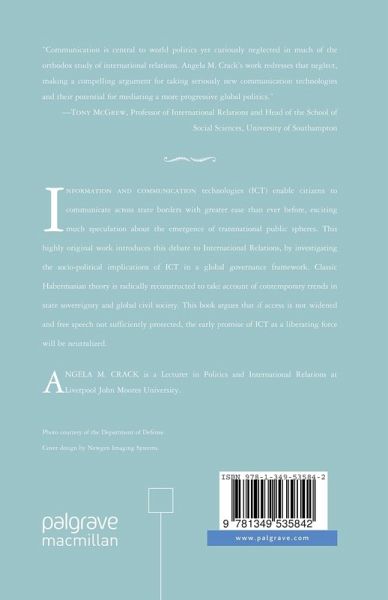 "Communication is central to world politics yet curiously neglected in much of the orthodox study of international relations. Angela Crack s work redresses that neglect making a compelling argument for taking new communication technologies seriously and their potential for mediating a more progressive global politics" - Tony McGrew, Professor of International Relations and Head of the School of Social Sciences, University of Southampton,United Kingdom