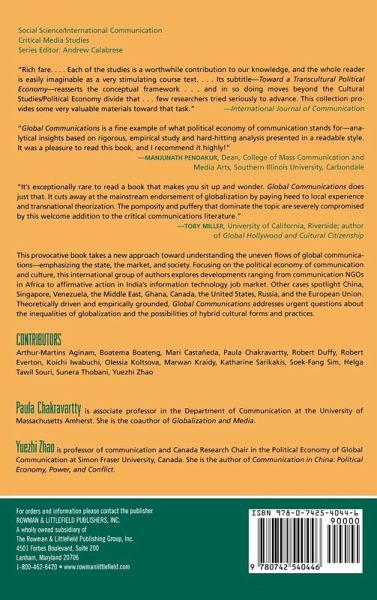Introduction Part I: The State and Communication Politics in Multiple Modernities Chapter 1: Neoliberal Strategies, Socialist Legacies: Communication and State Transformation in China Chapter 2: Media, State, and Responses to Globalization: The Case of Post-Communist Russia Chapter 3: Regional Crisis, Personal Solutions: The Media's Role in Securing Neoliberal Hegemony in Singapore Chapter 4: Governance and Legitimacy: The Case of the European Union Chapter 5: Media, Democracy, and the State in Venezuela's "Bolivarian Revolution" Part II: Embedded Markets and Cultural Transformations Chapter 6: Cultures of Empire: Transnational Media Flows and Cultural (Dis)Connections in East Asia Chapter 7: Local and Global Sites of Power in the Circulation of Ghanaian Adinkra Chapter 8: A Transcultural Political Economy of the Arab Television Industry Chapter 9: Rethinking the Spanish-language Media Market in the U.S. Part III: Civil Society and Multiple Publics Chapter 10: Gender and Empire: Performing Femininities in the War on Terrorism Chapter 11: Neoliberalism, Nongovernmental Organizations, and Communication in Sub-Saharan Africa Chapter 12: Move Over Bangalore, Here Comes . . . Palestine? Western Funding and "Internet Development" in the Shrinking Palestinian State Chapter 13: Labor in or as Civil Society? Workers and Subaltern Publics in India's Information Economy References