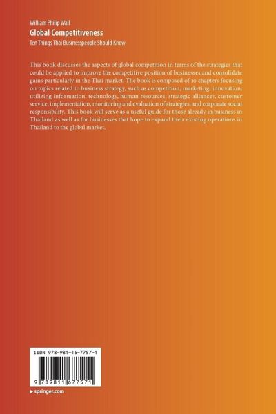 This book discusses the aspects of global competition in terms of the strategies that could be applied to improve the competitive position of businesses and consolidate gains particularly in the Thai market. The book is composed of 10 chapters focusing on topics related to business strategy, such as competition, marketing, innovation, utilizing information, technology, human resources, strategic alliances, customer service, implementation, monitoring and evaluation of strategies, and corporate social responsibility. This book will serve as a useful guide for those already in business in Thailand as well as for businesses that hope to expand their existing operations in Thailand to the global market.
