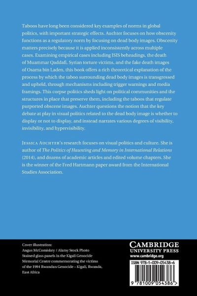 What makes a photograph of a dead body obscene? Auchter offers a genealogy of obscenity that argues this process is highly political. She explores how and why some images are framed as ethically necessary to view, while others are displayed as spectacles, and others deemed too graphic for viewing.