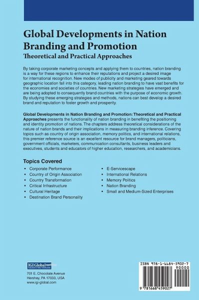 By taking corporate marketing concepts and applying them to countries, nation branding is a way for these regions to enhance their reputations and project a desired image for international recognition. New modes of publicity and marketing geared towards geographic location fall into this category, leading nation branding to have vast benefits for the economies and societies of countries. New marketing strategies have emerged and are being adopted to consequently brand countries with the purpose of economic growth. By studying these emerging strategies and methods, nations can best develop a desired brand and reputation to foster growth and prosperity. Global Developments in Nation Branding and Promotion: Theoretical and Practical Approaches presents the functionality of nation branding in benefiting the positioning and identity promotion of nations. The chapters address theoretical considerations of the nature of nation brands and their implications in measuring branding inference. Covering topics such as country of origin association, memory politics, and international relations, this premier reference source is an excellent resource for brand managers, politicians, government officials, marketers, communication consultants, business leaders and executives, students and educators of higher education, researchers, and academicians.