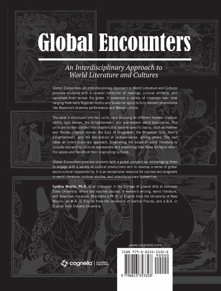 Global Encounters: An Interdisciplinary Approach to World Literature and Cultures provides students with a curated collection of readings, cultural artifacts, and narratives from across the globe. It examines a variety of creations over time ranging from early Nigerian myths and Sumerian epics to fully modern phenomena like Beyonce's Grammy performance and Marvel culture. The book is structured into four units, each focusing on different themes: creation myths, epic heroes, the Enlightenment, and postmodern world boundaries. The units are further divided into chapters that explore specific topics, such as Hebrew and Yoruba creation stories, the Epic of Gilgamesh, the Bhagavad Gita, Kant's Enlightenment, and the Declaration of Independence, among others. The text takes an interdisciplinary approach, broadening the scope of world literature to include non-written cultural expressions and examining how these artifacts reflect the values and beliefs of their originating cultures. Global Encounters provides students with a global perspective, encouraging them to engage with a variety of cultural productions and to develop a sense of global socio-cultural responsibility. It is an exceptional resource for courses and programs in world literature, cultural studies, and interdisciplinary humanities.