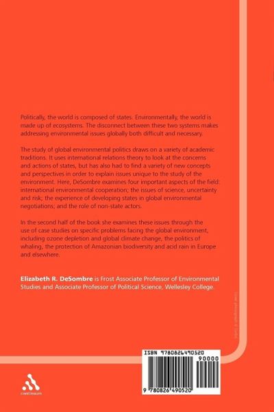 The study of global environmental politics draws on a variety of academic traditions. This title examines four important aspects of the field: international environmental cooperation; the issues of science, uncertainty and risk; the experience of developing states in global environmental negotiations; and the role of non-state actors.