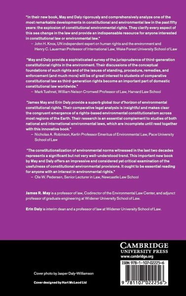 Acknowledgements Introduction Part I. Evolution and Existence of Environmental Constitutionalism Section 1. The Nature of Environmental Constitutionalism: 1. The limitations of international law 2. Domesticating environmental rights 3. The value of constitutionalism 4. The legitimacy of environmental constitutionalism 5. The value of environmental constitutionalism Section 2. Textualizing Environmental Constitutionalism: 6. Likelihood of constitutional instantiation of environmental rights 7. Substantive individual environmental rights to a quality environment 8. Other substantive environmental rights 9. Environmental duties and responsibilities 10. State environmental duties and policies 11. Procedural constitutional environmental rights 12. Presumptions about enforcing constitutional environmental rights Part II. Vindication and Practices in Environmental Constitutionalism Section 3. Adjudicating Environmental Constitutionalism: 13. Challenges in adjudicating environmental rights 14. Justiciability in environmental constitutionalism Section 4. Enforcing Environmental Constitutionalism: 15. Standing: who can enforce constitutional environmental rights 16. Who is responsible? Identifying the appropriate defendant 17. Timing: when is the right time to file a claim? 18. Other unique procedural rules challenges 19. Defenses and limitations Section 5. Identifying Remedies and Practices in Environmental Constitutionalism: 20. State obligations under the international law framework 21. The range of remedies 22. Challenges to enforcement Part III. Emergence and Future of Environmental Constitutionalism Section 6. Water and Environmental Constitutionalism: 23. The uniqueness of water 24. Manifesting constitutional recognition of rights to water 25. Adjudicating constitutional rights to water 26. Remedies, implementation, and enforcement Section 7. Subnational Environmental Constitutionalism: 27. The nature of subnational environmental constitutionalism 28. Textual subnational environmental constitutionalism 29. Judicial receptivity to subnational constitutional environmental rights 30. Establishing standing and identifying parties 31. Determining remedies 32. Standards of review Section 8. Procedural Environmental Constitutionalism: 33. The nature of constitutional procedural environmental rights 34. Textual procedural environmental rights 35. Judicial receptivity to procedural environmental rights 36. Enforcement and remedies Section 9. Emerging Environmental Constitutionalism: 37. Right of nature 38. Environmental sustainability 39. Public trust 40. Climate change Section 10. Conclusion Appendices: A. Substantive environmental rights B. Individual environmental duties and responsibilities C. State environmental duties D. Environmental policy directives E. Sustainable development, future generations, and public trust F. Miscellaneous constitutional environmental provisions G. Rights to water H. Representative subnational environmental constitutionalism in Brazil and the United States I. Procedural environmental rights: provisions regarding information, participation, and access to justice in environmental matters Bibliography Index.