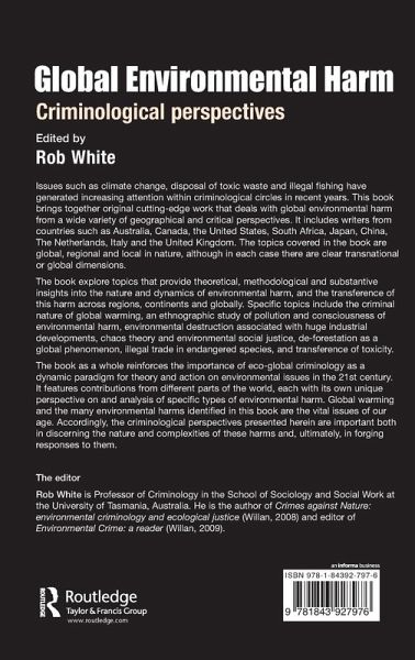 This collection brings together original research to explore the importance of eco-global criminology as a dynamic paradigm for theory and action on environmental issues in the 21st century. It serves as an excellent introduction to the topic, providing theoretical, methodological and substantive insights into the nature of global environmental harm from a wide variety of geographical and critical perspectives.