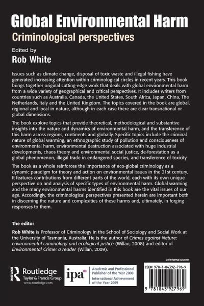 This book brings together original cutting edge work that deals with global environmental harm from a wide variety of geographical and critical perspectives. The topics covered in the book are global, regional and local in nature, although in each case there are clear transnational or global dimensions. The book explores topics that provide theoretical, methodological and substantive insights into the nature and dynamics of environmental harm, and the transference of this harm across regions, continents and globally. Specific topics include the criminal nature of global warming, an ethnographic study of pollution and consciousness of environmental harm, environmental destruction associated with huge industrial developments, chaos theory and environmental social justice, de-forestation as a global phenomenon, illegal trade in endangered species, and transference of toxicity. The collection as a whole reinforces the importance of eco-global criminology as a dynamic paradigm for theory and action on environmental issues in the 21st century. The criminological perspectives presented herein are important both in discerning the nature and complexities of global environmental harms and, ultimately, in forging responses to them.
