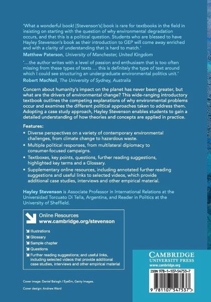 'What a wonderful book! Her book is rare for textbooks in the field in insisting on starting with the question of why environmental degradation occurs, and that this is a political question. This gives admirable focus to the volume that then covers the topics that are taught in courses on Global Environmental Politics (GEP) with great clarity. Students who are blessed to have Hayley Stevenson's book as their introduction to GEP will come away enriched and with a clarity of understanding that is hard to match.' Matthew Paterson, University of Manchester
