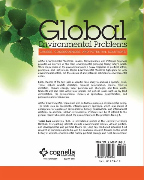 Global Environmental Problems: Causes, Consequences, and Potential Solutions provides an overview of the main environmental problems facing today's world. While many books on the environment place a heavy emphasis on political actors, processes, and institutions, Global Environmental Problems highlights not only environmental actors, but the causes of and potential solutions to environmental crises. Each chapter of the text uses a specific case study to address a specific issue. These include wildlife depletion, tropical deforestation, marine fisheries depletion, climate change, water pollution and shortages, and toxic waste. Students will also learn about less familiar, but critical issues such as dry land deforestation, the environmental impacts of agriculture, desertification, and population and urbanization. Global Environmental Problems is well suited to courses on environmental policy. The book uses an accessible, interdisciplinary approach, which also makes it appropriate for courses on environmental history, conservation, and international relations. In addition, Global Environmental Problems will be of interest to the general reader who cares about the environment and the problems facing it.