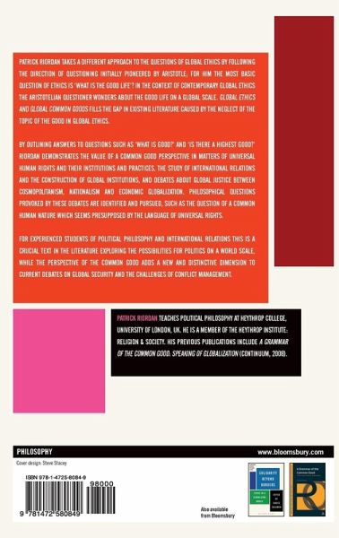 Patrick Riordan takes a different approach to the questions of global ethics by following the direction of questioning initially pioneered by Aristotle; for him the most basic question of ethics is 'what is the good life'? So in the context of contemporary global ethics the Aristotelian questioner wonders about the good life on a global scale. Global Ethics and Global Common Goods fills the gap in existing literature caused by the neglect of the topic of the good in global ethics. Beginning by outlining answers to questions such as 'what is good?' and 'is there a highest good?' Riordan demonstrates the value of a common good perspective in matters of universal human rights and their institutions and practices, the study of international relations and the construction of global institutions, and debates about global justice between cosmopolitanism, nationalism and economic globalization. Philosophical questions provoked by these debates are identified and pursued, such as the question of a common human nature which seems presupposed by the language of universal rights. For experienced students of political philosophy and international relations this is a crucial text in the literature exploring the possibilities for politics on a world scale, while the perspective of the common good adds a new and distinctive dimension to current debates on global security and the challenges of managing conflict.