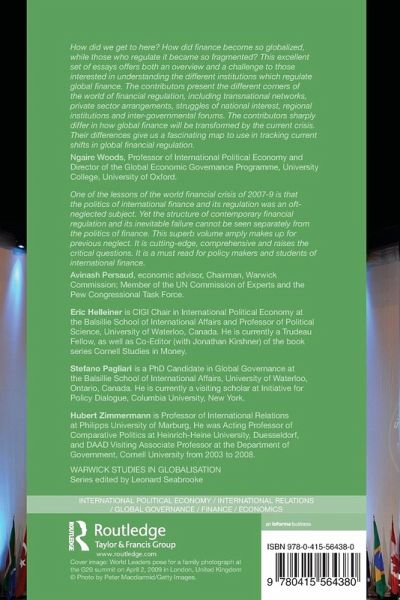 1. Introduction - Global Finance in Crisis: The Politics of International Regulatory Change Eric Helleiner and Stefano PagliariPart 1: Issues and Structures 2. Regulatory Reactions to the Global Credit Crisis: Analysing a Policy Community under Stress Eleni Tsingou 3. The Politics of Accounting Regulation: Responses to the Subprime Crisis Andreas Nölke 4. Risk Models and Transnational Governance in the Global Financial Crisis: The Cases of Basel II and Credit Rating Agencies Tony Porter 5. The End of Self-Regulation? Hedge Funds and Derivatives in Global Financial Governance Eric Helleiner and Stefano PagliariPart 2: Countries and Regions 6. Uncertain Leadership: The U.S. Regulatory Response to the Global Financial Crisis David Andrew Singer 7. Is a European Approach to Financial Regulation Emerging from the Crisis? Elliot Posner 8. Varieties of Global Financial Governance? British and German Approaches to Financial Market Regulation Hubert Zimmermann 9. Mission Accomplished, or a Sisyphean Task? Japan's Regulatory Responses to the Global Financial Crisis Saori N. Katada 10. Chinese Attitudes towards Global Financial Regulatory Cooperation: Revisionist or Status Quo? Andrew Walter 11. Whither International Financial Regulation? Hubert Zimmermann