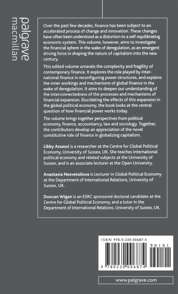 This edited book deepens our understanding of the complex processes and mechanisms of financial expansion and the effects of this expansion in the global political economy. It brings together perspectives from political economy, finance, accountancy, law and sociology to consider the central question of how financial power works.