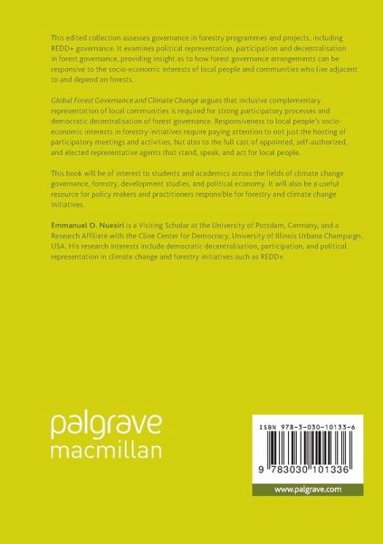 1. Global Forest Governance and Climate Change: Introduction and Overview; Emmanuel O. Nuesiri .- 2. Godfather Politics and Exclusionary Local Representation in REDD+: Case Study of the Design of the UN-REDD Supervised Nigeria-REDD Proposal; Emmanuel O. Nuesiri .- 3. The Illusion of Participation: Tokenism in REDD+ Pilot Projects in the Democratic Republic of Congo (DRC); Raymond Achu Samndong .- 4. Institutional Choice and Substantive Representation of Local People in Carbon Forestry in Uganda; Robert Mbeche .- 5. Displacement, Power and REDD+: A Forest History of Carbonized Exclusion; Emma Jane Lord .- 6. Examining the Supply and Demand of Effective Participation and Representation; George Akwah Neba, Gretchen Walters, Ha-Young Jung .- 7. Experience of Participatory Forest Management in India - Lessons for Governance and Institutional Arrangements under REDD+; Indu K. Murthy et al. .- 8. REDD+ and the Reconfiguration of Public Authority in the Forest Sector: A Comparative Case Study of Indonesia and Brazil; Chris Höhne et al. .- 9. Evolution of the Mexico's REDD+ Readiness Process Through the Lens of Legitimacy; Jovanka Spiric .- 10. When REDD+ Fails to Support Democratic Representation: Legitimizing Non-Democratic Practices in the Amazon; Carol M. Burga.